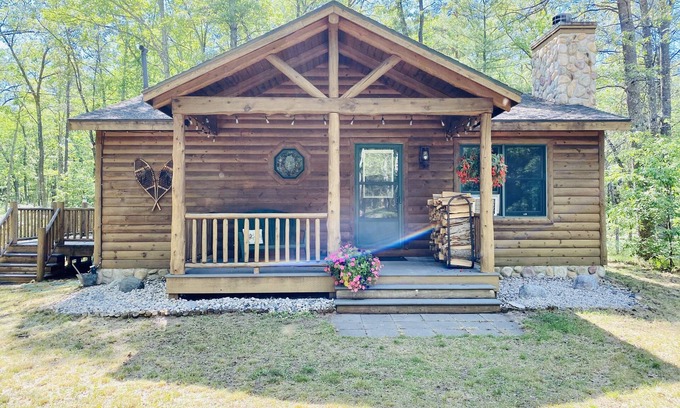 A truly Northern Michigan feel located on a private road and surrounded by the Manistee National Forest on three sides. The cabin boasts two large decks for viewing the surrounding forest. The cabin is cozy and offers all the amenities needed for a week in the woods. Enjoy a fire indoors or a bonfire under the stars and lights.