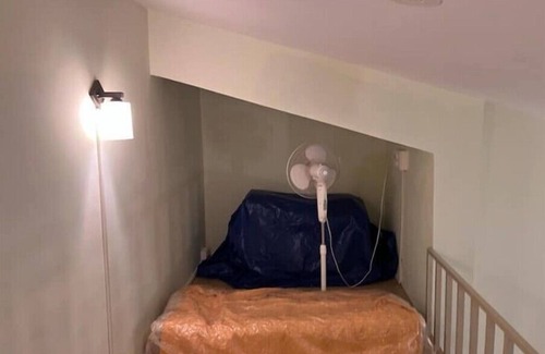 Hall Mezzanine - Access to this section is from the Hall. It can sleep 2/3 if available or can be used for play or seating There are two window ac units one facing the hall mezzanine and the other from the East hall balcony side. Additionally, there are ceiling fans in all areas with a pedestal unit for the mezzanine floor. The section below the mezzanine is mirrored for dressing, and selfies and to give more depth to the room.