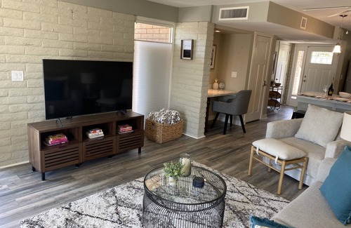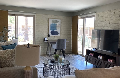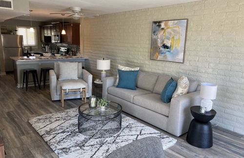 Kick back and relax in this calm, stylish single-level condo with King size primary bedroom and Queen sleeper sofa in desirable Scottsdale south of Cave Creek-close to world class golf and hiking. The newly furnished (2022) condo is located in a quaint community of only 20 units. This offers you turnkey living-well-appointed kitchen, laundry-room, step-in shower, work areas, four-person breakfast bar, convertible desk/table, large, furnished patio with gas grill. Linens and towels provided.