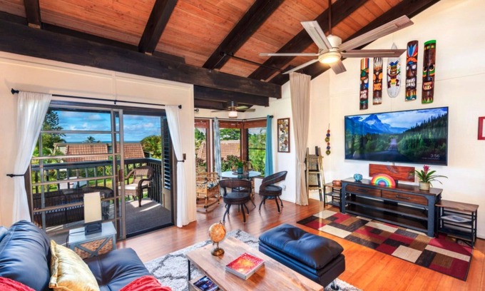 The owner, Tony, has provided boogie boards, water noodles and snorkeling gear. Stores, restaurants and spa are within walking distance. At the end of Wyllie Road is a trail down to Anini Beach to get to the beach on foot, and you are only 10 minutes away from Hanalei Bay. You are in the center of the North Shore's many beaches to the East and West of you. Princeville features many walking trails, great views, restaurants, shops, golf and tennis. Even if you don't golf, you can take a sunset view tour of the most gorgeous settings on golf carts complete with a bar and goodies. Hoku Lani is a great place to relax at night too. There is a 70 inch smart TV for your Netflix or others apps. Just cast them from your phone. There is one last amenity that no one else has. If you love to star gaze, you can make an appointment with Tony to see through his telescope which is taller than him, called a light bucket, out at the pool at night! What a memorable & fun activity. Big TV, big telescope, big savings. :o) Why wait? Book today and save!