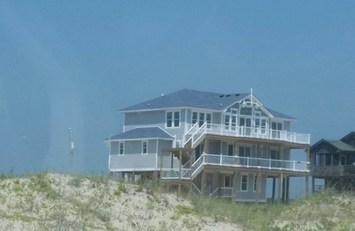 "North Shore" Extraordinary Oceanview, beach and breaker views! Pool, Hot Tub, Wi-Fi, outdoor shower and 3 levels with an Elevator! Drive your four-wheel drive vehicle to the edge of the pavement, shift into four-wheel drive and cruise up this beautiful sandy coast of eastern North Carolina home of the wild horses.