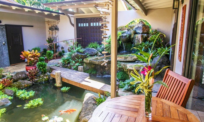 North Shore Oasis - Tropical Waterfall Garden And Bali Hai Sunsets is located in Princeville. North Shore Oasis - Tropical Waterfall Garden And Bali Hai Sunsets provides accommodation, featuring TV, Security/Safety, Hot Tub, among other amenities. This House features TV, Security/Safety, Hot Tub, to make your stay a comfortable one.