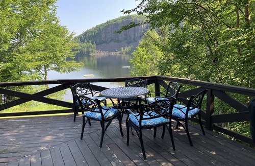 Resting on a grassy slope above the private shoreline of a crystal-clear lake, this unassuming 4-bedroom cottage has a fully equipped, recently renovated kitchen; a large dining room and a grand room with monumental fireplace and mesmerizing views of the surrounding nature and skies; a private deck with a BBQ (+complimentary propane) and two patio sets; two bathrooms; and a laundry room with washer and dryer. A selection of outdoor and indoor games and toys; books and DVDs for all ages; an electrical keyboard; two TV sets and high speed unlimited WIFI will ensure a pleasant stay, whichever way you prefer to spend your time.