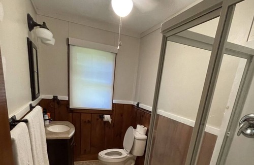 Cozy Adirondack cottage across from lake. Walking distance to beach(parking access as well), fishing, and local trails. Screened patio and exterior deck for enjoying the serene atmosphere. Sleeps 7 comfortably
