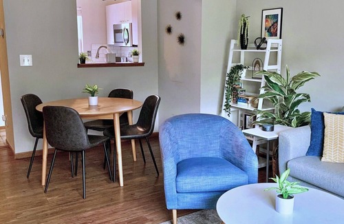 The condo has been updated with modern furnishings and kitchen appliances and a 2nd full bath. There is ample free parking for 2 cars in front of the condo and you have your own private entrance. The entry level has the kitchen, dining area, living room and patio. 2nd level has 2 bedrooms and a bathroom with tub and shower. Basement level has a finished den/ office, 2nd bath with shower, and an unfinished storage and laundry area complete with washer and dryer. Super High-Speed wifi available throughout the condo.