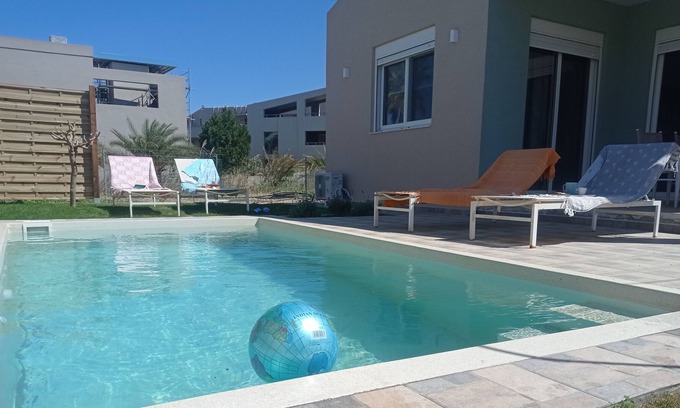 Come to Greece, Crete, Chania, come to Nostalgico. Nostalgico is located in the small coastal village of Skoutelonas, just 25 km from Chania and 1 km from Kolymvari. It is a newly built detached house with a private pool and garden, just 200m from the beach! It was made with care and love to host you, your friends and family in a holiday experience that you will remember with ... nostalgia!
