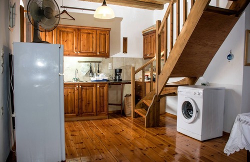Mare Apartment is very spacious and accommodates up to 3 people, with one bathroom. The loft serves as the bedroom with one double bed. There are two single beds downstairs. The kitchen is open plan. 3 people has 1 bathroom.