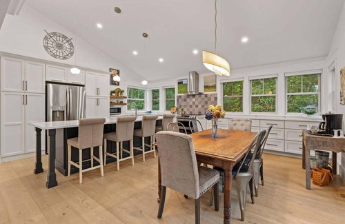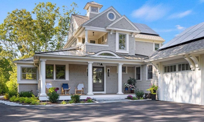 Ultra luxurious, brand-new home on a half acre of park-like grounds in leafy, quiet North Falmouth! With multiple porches, a deck, and a zen garden surrounding the outdoor shower, you'll feel those Cape Cod breezes inside and out. Enjoy your spa retreat with the steam shower, and whirlpool tub; entertain graciously in the open kitchen/dining/living room. Have your morning coffee in the upstairs aerie, sunbathe in private on the second floor deck, and end the day with drinks on the outdoor covered porch. Sunsets every night, usually spell-binding! You'll be just up the road from the bike path, and an easy 1 mile (by foot) or 2 miles (by the road) to gorgeous Old Silver Beach. Bike, run or drive to Main St Woods Hole, and other beaches, easy-peasy. Your experience in this exquisite home will make lifetime memories! Definitely not a cottage, but for sure, a castle...14 Day Minimum