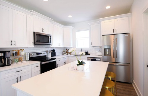 Welcome to Nova's Nook, your home-away-from-home in the heart of Auburn! Located just 1.9 miles from Jordan-Hare Stadium, this spacious and comfortable retreat is perfect for families or groups looking to enjoy all that Auburn has to offer. The home features a beautifully designed downstairs master bedroom with a king-sized bed, and upstairs you'll find another king bedroom and a third room with a queen bunk bed and pull-out sofa, which comfortably sleeps 1 person. There is also a blow up mattress, making this house the perfect fit for up to 10 guests! The fully equipped kitchen with brand-new appliances makes it easy to whip up delicious meals, and the dining room table offers plenty of space to gather for meals or game-night fun.