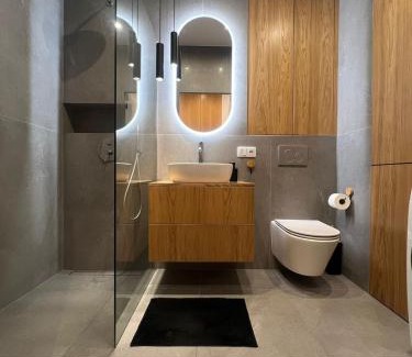 Nowoczesny Apartament w centrum Warszawy parking, smart TV, self check-in offers accommodations in Warsaw, 2.3 miles from Warsaw Uprising Museum and 2.5 miles from Blue City. Guests can benefit from a balcony and a children's playground. There's a sun terrace and guests can use free Wifi and free private parking. The air-conditioned apartment consists of 1 bedroom, a living room, a fully equipped kitchen with a dishwasher and a coffee machine, and 1 bathroom with a shower and a hair dryer. A flat-screen TV with streaming services is offered. The apartment offers bed linen, towels, and laundry service. During the colder months, guests can enjoy winter sports in the surrounding area. The apartment has a picnic area where you can spend the day outdoors. Warsaw West Train Station is 3 miles from the apartment, while Warsaw Central Station is 3.5 miles from the property. Warsaw Frederic Chopin Airport is 5 miles away.