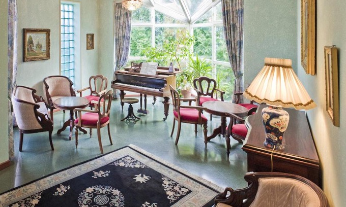 BathroomShower, Bathtub, Hairdryer, Free toiletries, Toilet, Private Bathroom, Bathtub or shower, Towels, Toilet paperGeneralSafe, Air conditioning, Ironing facilities, Heating, Carpeted, Private entranceMedia & TechnologyPay-per-view channels, Telephone, Satellite channels, Flat-screen TV, Streaming service (like Netflix)ServicesWake-up service/Alarm clock, Wake-up serviceKitchenRefrigerator, DryerLiving AreaSitting area, FireplaceOutdoorsPatio, Terrace, Outdoor furnitureViewView, Garden view, Inner courtyard viewBedroomAlarm clock, Wardrobe or closet, LinensAccessibilityUpper floors accessible by stairs onlyRoom AmenitiesClothes rack, Socket near the bedPhysical distancingSingle-room AC for guest accommodation |