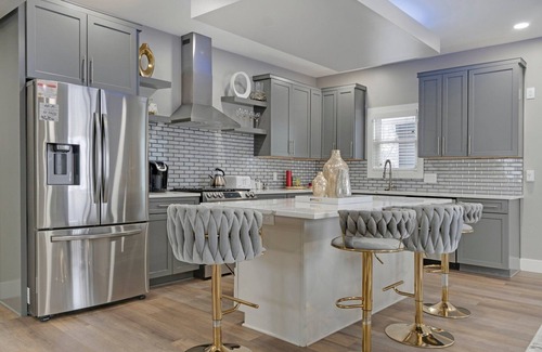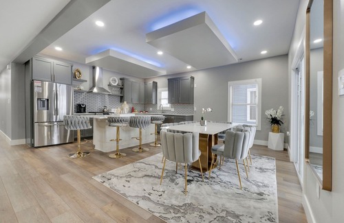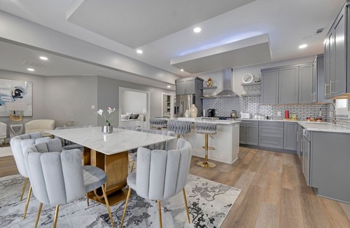 Fully equipped kitchen with high-end appliances and elegant dining space