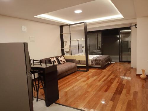 A 14-minute walk from 17 de Obrajes Teleferico Station in La Paz, Nuevo departamento de lujo céntrico Zona Obrajes provides accommodations with access to wellness packages, beauty services, and fitness room. Private parking is available on site. The accommodation offers a 24-hour front desk, an elevator, and currency exchange for guests. With free Wifi, this 1-bedroom apartment features a flat-screen TV and a kitchen with a microwave and fridge. Towels and bed linen are available in the apartment. This apartment is non-smoking and soundproof. As an added convenience, the apartment offers packed lunches for guests to bring on excursions and other trips off-property. Sightseeing tours are available close to the property. Outdoor play equipment is also available at Nuevo departamento de lujo céntrico Zona Obrajes, while guests can also relax on the sun terrace. Alto Obrajes Teleferico Station is a 14-minute walk from the accommodation, while Libertador Teleferico Station is 1.1 miles from the property. El Alto International Airport is 7.5 miles away.