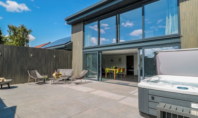 Amenities: Air source heat pumps. Underfloor heating through out. Oven, hob, dishwasher, fridge-freezer, L'OR coffee machine, microwave, filtered drinking water, kettle. First floor sitting room. 1 x 65" smart TV, Wi-Fi American style pool table. Fuel and power inc. in rent. Bed linen and towels inc. in rent. Private driveway & parking. Electric car charger. Enclosed private patio with furniture and barbecue. Fire pit. Hot tub. Two well-behaved pets welcome (fee applies). Safe at the property. Secure bike storage. No smoking indoors. Shop 0.4 miles, pub 0.4 miles, lake foot path 300 metres. Please note, this property only accepts changeovers on a Monday or Friday, This property, also only accepts 3, 4 or 7 night stays