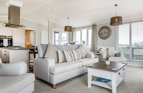 Number 8 is a contemporary single-storey lodge resting in Brean, Somerset. Hosting two bedrooms, including a king-size with a TV and en-suite walk-in shower, and a twin with TV, along with a bathroom, this property sleeps up to four guests. There is also an open-plan living space with kitchen, dining area and sitting area. Outside there is off-road parking for 3 cars and a decked area with furniture. For a tranquil retreat to the coast, choose a stay at Number 8.