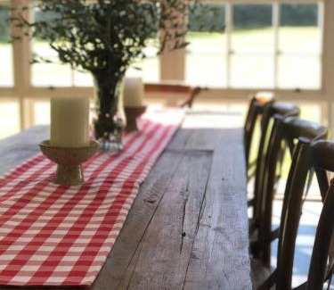 Food & DrinkTea/Coffee makerBathroomShower, Bathtub or shower, Toilet paper, Body soap, Toilet, TowelsMedia & TechnologyTV, Flat-screen TVGeneralFire extinguisher, Fan, Ironing facilities, Smoke Alarm, IronOutdoorsOutdoor furniture, Outdoor dining area, Patio, BalconyKitchenRefrigerator, Stovetop, Oven, Wine glasses, Coffee machine, Kitchen, Toaster, KitchenwareLiving AreaFireplaceViewMountain view, Garden view, ViewBedroomLinensBuilding CharacteristicsDetachedEntertainment & Family ServicesBoard games/puzzlesCleanliness & disinfectionHand sanitizer |