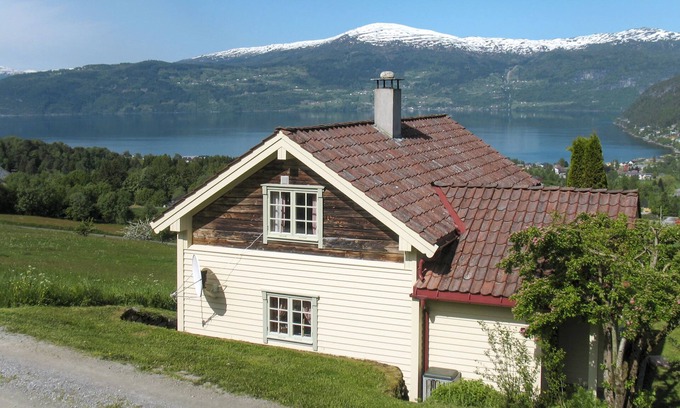 Beautiful timber house "Nystova". 2 km from the centre of Innvik, 36 km from the centre of Stryn, 38 km from the centre of Sandane, on a slope, 1.5 km from the sea, 1.5 km from the fijord. Private: natural state property with meadow, parking on the premises. Shop 2 km, supermarket 36 km, bus stop "Innvik" 2.1 km, ferry "Bergen" 265 km. Mountain railway 27 km, ski lift 17 km, fishing possibilities 1.5 km.