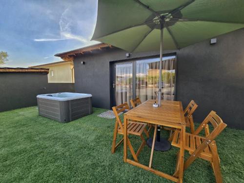 Food & DrinkTea/Coffee makerBathroomBody soap, Free toiletries, Shampoo, Toilet, Toilet paper, Towels, Private bathroom, Shower, Spa tub, Walk-in showerMedia & TechnologyCable channels, TV, Satellite channels, Flat-screen TVGeneralFan, Fire extinguisher, Soundproof, Trash cans, Private entrance, Hardwood or parquet floors, Air conditioningActivitiesHot tubKitchenMicrowave, Toaster, Coffee machine, Dining table, Stovetop, Wine glasses, Electric kettle, Kitchen, RefrigeratorLiving AreaSitting area, Sofa, Dining areaOutdoorsPatio, Terrace, Outdoor furniture, Outdoor dining areaViewGarden view, View, Quiet street view, Mountain viewBedroomLinens, Childrens' cribsAccessibilityEntire unit located on ground floorBuilding CharacteristicsDetachedRoom AmenitiesSofa bed, Hypoallergenic pillow, Socket near the bed |
