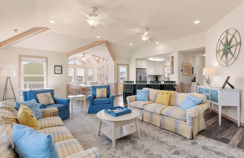 O'Shinn View is a casual yet well-appointed home in Whalehead Beach that provides guests with must-have amenities, nearby conveniences and... you guessed it - an ocean view! The oceanside location means getting to the beach is safe and easy using the Dolphin Street public access, just a 3-minute walk away. Back at the house, your family will love having a private pool right in the backyard which includes a hot tub and plenty of room for lounging in the sun. There's also a private putting green for honing your skills before heading over for a round of golf at The Currituck Club's Reece-Jones designed course.