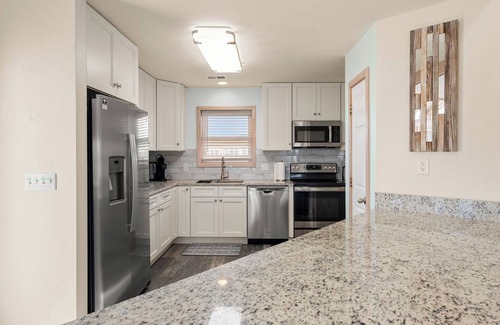 Inside, a reverse floorplan and east-facing sun deck take full advantage of the ocean views from the top level. When you're not dining out at one of Corolla's fabulous restaurants, use the newly remodeled kitchen to prepare meals at the house. The chef in the family will especially appreciate the open-concept layout, where they can still be part of the action while cooking. O'Shinn View is ideal for extended families or multiple groups vacationing together. With a primary suite on the top level and three additional master suites on the mid-level, everyone will have plenty of space and privacy. Downstairs, you'll find two more bedrooms and a game room. Shoot pool or play Foosball for hours of indoor entertainment. There's even a wet bar with full-size fridge, perfect for convenient drinks and snacks by the pool.