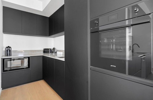 To the side of the kitchen sits a grand 10-seater wooden dining table, for the whole family to enjoy a meal together on. Adjacent is the main living room, which hosts a plush 5-seater couch in front of the gas fireplace, so you can cozy up for movie time on the large smart TV.
