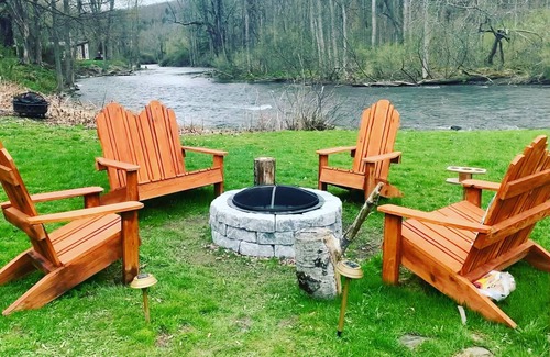 Come for the cute, quaint and comfy home. Stay for the creekside living. Perfect for fishing, swimming, catching crayfish or just relaxing and listening to the water. The home has everything you need including TV’s with streaming services, internet, a full kitchens and big comfortable beds. Games inside and outside to enjoy and make family trips extra special and make memories for a lifetime. I created this space with family in mind in hopes that you will want to unwind, be with the ones you love and take a break from the hustle and bustle of everyday life. You might never want to leave! There are air conditioners in every bedroom and one in the main part of the home. Portable fans also provided. Please note this is on a main road and not out on the back roads in Fly Creek. The yard is private and like the photos show, has the best access to Oaks Creek that I have seen so far! You can walk right in or sit right at the bank and cast a fishing pole. The Fly Creek General Store is 1 mile away with all your basic needs. There is a charcoal grill on the deck and often charcoal is there to use from previous guests but not to be an expected amenity. We have all your basic amenities; blow dryer, iron, full kitchen, coffee maker, usb chargers, shampoo, conditioner and body wash, kettle and tea, popcorn maker, even s’mores sticks! There are a lot of investors in the area who live in the cities which is great but I find it to be so valuable that I also call Fly Creek my home and can give you recommendations and suggestions based on what my family and I also love to do! We love our guests and strive to provide a 5 star experience for all who come here, if you have any additional requests please feel free to ask!