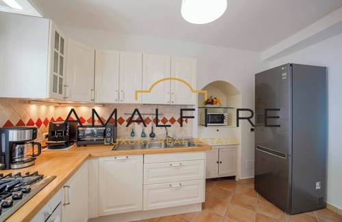 The flat can accommodate up to 6 guests. It has:The flat has two communicating double bedrooms, divided into two separate areas with a dividing wall , that offering intimacy while maintaining a pleasant openness to the surroundings, it has two double beds 160x200, with a balcony and a view of the terrace, a large dining room with a double wall bed 160x190 that can be folded down on request. For guests, up to 4 people, who prefer more privacy, it is possible to request separate rooms on request. It also has a fully equipped kitchen with washing machine and dishwasher and a bathroom with shower. A highlight is the outdoor space, entirely with a sea view embracing the entire gulf of Salerno, from Vietri sul mare to the island of Galli. The large terrace with outdoor table for 6/8 persons, solarium, two seater swing, outdoor shower and area equipped with a splendid sea view swimming pool for 6/8 persons of 9000 litres with solar panel heating on request. In addition, the outdoor space , FOR A TOTAL OF 350 USABLE SQUARE METRES , has training equipment. It's the perfect oasis to enjoy the breathtaking view accompanied by the chirping of the sparrows during the day and the singing of the cicadas at sunset, completely surrounded by greenery. An Oasis just a step away from the sky, from which to admire the stars in summer in the company of friends or family during your dinners, accompanied by a good glass of local wine.We recommend arriving by your own vehicle or, on arrival, renting a scooter to make your journey less stressful, as from the bus stop on the main road the flat is 300 metres uphill .