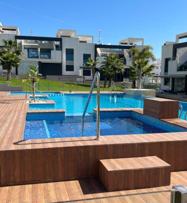 Oasis Beach, Punta Prima, Torrevieja offers accommodations in Alicante, 1.5 miles from Cala Ferris Beach and 5.2 miles from Las Colinas Golf Course. This property offers access to a balcony, free private parking, and free Wifi. Outdoor seating is also available at the apartment. Featuring a terrace and pool views, the spacious apartment includes 2 bedrooms, a living room, cable flat-screen TV, an equipped kitchen, and 2 bathrooms with a shower. Towels and bed linen are offered in the apartment. This apartment is allergy-free and non-smoking. During warmer months, you can make use of the barbecue facilities and eat on the private patio. For guests with children, Oasis Beach, Punta Prima, Torrevieja features kids pool and a children's playground. Guests can enjoy the outdoor swimming pool and garden at the accommodation. Villamartin Plaza is 3 miles from Oasis Beach, Punta Prima, Torrevieja, while Salinas de Santa Pola Nature Reserve is 20 miles away. Region de Murcia International Airport is 31 miles from the property, and the property offers a paid airport shuttle service.