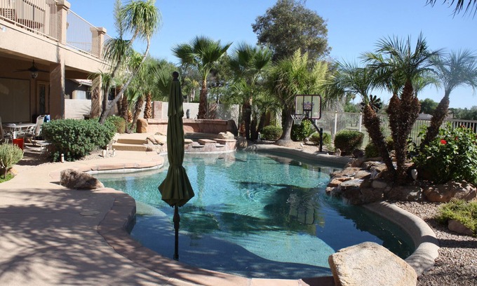 Oasis in the desert! Pool, hot tub, putting chipping green, outdoor bar has 4 Bedrooms , 2 Bathrooms, and max occupancy of 10 people. The minimum rental for this property is 1 nights, but this can change depending on the season you plan on staying. Previous guests have given good rated it, and VRBO labeled it a top-rated House because of the excellent services rendered by the owner or manager of this House, and has consistently provided great experiences for their guests. Most families or guests that use it recommend it to their friends and some of them are repeat guests. House has a friendly neighborhood, and the Superstition Springs has interesting places to visit. If you want to learn more about the House in Superstition Springs, such as places to visit and things to do nearby, you can check below to learn more.