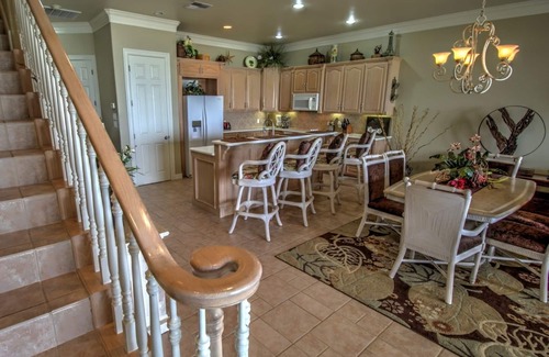 On the first floor you'll find a corrian topped Chef's Kitchen. The kitchen is fully stocked and you'll have everything you need to cook up some fresh caught local fare. Bar seating for five allows for relaxing conversation and the dinner table for 6 makes more formal dining simple. The family room has a large L-couch with enough pillows for everyone to lay down and enjoy an evening movie on the 60 inch television.