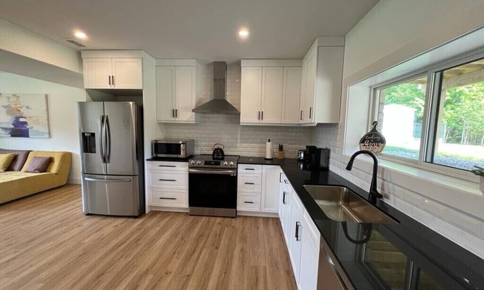 Enjoy a stylish experience at this centrally located raised bungalow basement apartment 10mins walk to the beach close to all amenities. Minutes to the lakes, trails, Sauble beach, endless serenity to enjoy. The perfect space for anyone to make your home away from home. Beautiful and Spacious with lots of natural lighting. King size beds and Smart TV in all 3 bedrooms, 2 full size bathrooms, chef’s kitchen with amazing living space. On-site laundry room, free parking for 2 Vehicles and water