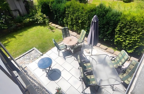 The house is centrally located in the spa town of Oybin in the Zittau Mountains Nature Park, just a few minutes' walk from the town center. Hiking trails to Oybin, Hochwald, Töpfer, or Scharfenstein start right at your doorstep. The narrow-gauge railway and the mountain express are quickly accessible. Restaurants, cafés, and excursion destinations are in the immediate vicinity.
