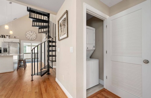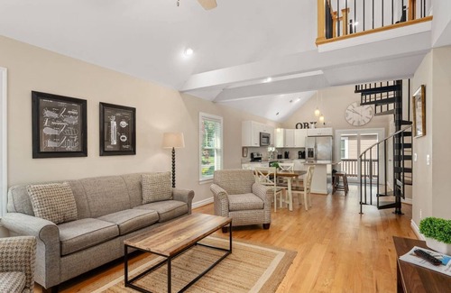 In addition to a gourmet kitchen and beautiful living/dining area, each cottage has 2 bedrooms and 2 full bathrooms downstairs (each bedroom has 2 full-sized beds). There is a loft located up a spiral staircase with 2 additional full-sized beds. The loft area is open to the downstairs living area. There is a gas grill on the back deck. Stacked washer and dryer downstairs.