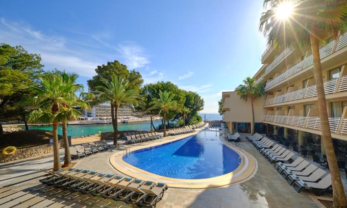 Occidental Cala Viñas (formerly Barceló Cala Viñas) is in south-west Mallorca, 0.6 mi south of Magaluf and 164 feet from the sea. It has a spa, 2 outdoor pools and a hot tub with sea views. The spa at the Occidental Cala Viñas offers a range of treatments at an extra cost, including a salt water circuit and massages. There is also a Turkish bath and a sauna. The hotel runs a varied entertainment program for children and adults, and the children’s pool has a climbing frame and slide. The hotel’s buffet restaurant, Ses Voltes, offers show cooking, and there is a poolside bar where guests can get a drink or a snack. All rooms at the Cala Viñas are air-conditioned and have a private bathroom with a hairdryer. There is also a telephone and work desk. Free Wi-Fi is available in the lobby. Palma Airport is 12 mi away from the hotel, and Poniente Golf Club is just 0.6 mi away. This seasonal hotel is open from May to October.