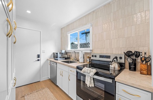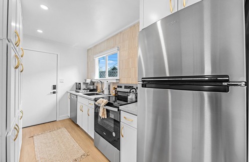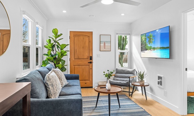 Welcome to your perfect beach retreat in the heart of Ocean Beach! This charming one-bedroom rental features a bonus room, comfortably sleeping up to 5 guests. Each bedroom is outfitted with hotel-quality linens and towels, ensuring a luxurious and restful stay.