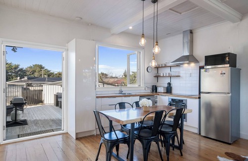 The bach accommodates up to six guests with two king beds, a king single bunk bed, and a neat bathroom with laundry. Pets and young kids will love the secure outdoor space, and the modern amenities inside promise a relaxing stay.