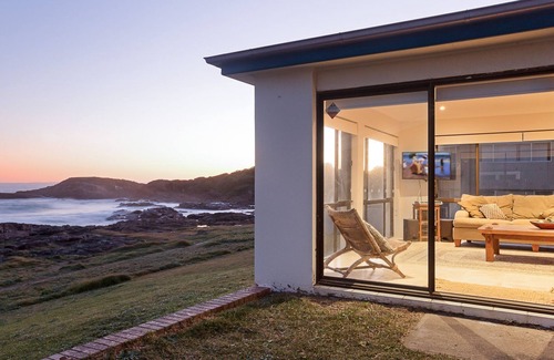 In winter the lounge room provides a cosy vantage point for whale watching.