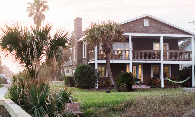 Ocean Front Beach house. One of the original homes here in Neptune Beach. Beautifully renovated and includes a one-of-a-kind playroom. Very family-friendly. Master bedroom downstairs with California king bed. Kids' bedroom downstairs with 2 twin beds and room for another child with the twin mattress on top of the playhouse. 2 full baths plus an outdoor shower. Master bath with newly renovated walk-in shower. Washer and dryer downstairs. 1 car garage with keypad entry garage doors. Walk upstairs to a spacious & open concept living room and kitchen. Kitchen complete with bar + 4 bar chairs, oven, stove, microwave and spacious refrigerator. 2nd full bath upstairs. Large playroom that doubles as additional guest room...just roll out the giant king air mattress on stilts! Plus 2 kid sofa/mattresses that double as beds as well. Full teak dining table outside on deck overlooking the Atlantic Ocean. Large, spacious back yard; beach access in back yard. Outdoor shower & hammock. Newly renovated deck downstairs with spacious and comfortable seating area. Out door fire pit, back porch grill, and interior fireplace. Beach chairs, surfboards, boogie boards, bikes and sand toys... This house is the perfect family vacation home. *Please note, we do not have televisions in our home. We do have high speed internet, so please plan accordingly. :)