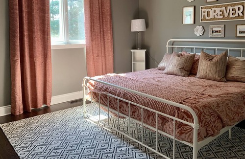 A fully stocked kitchen with a Jenn Air stove, fridge, dishwasher and outdoor BBQ accommodates meals at home. The cottage comes complete with a heat pump for air conditioning/heating, furnace, laundry, dishwasher, high speed internet, smart tv with cable and a propane fireplace. There is also a red stone fire pit to build campfires at night. The adjacent stair access to the shore allows easy access to the water.