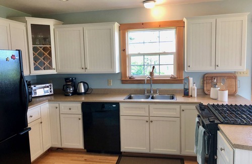 A well equipped kitchen featuring a gas range, dishwasher and all that is needed to create gourmet meals. Board games, books, toys, pack n play and highchair for family comfort and fun.