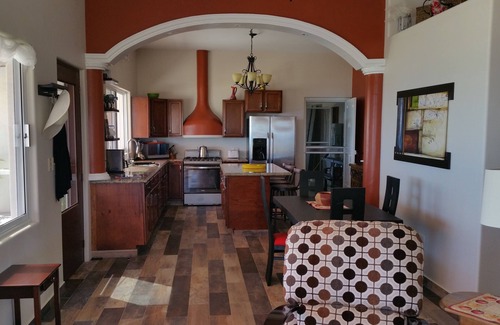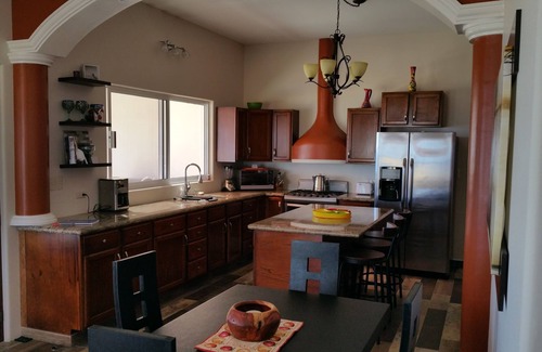 Casa Kiefer! has been and still is a labor of love for us, This oceanfront hideaway is perfect for anyone looking to relax and unwind. You will marvel at the beautiful views of the Sea of Cortez and the breathtaking coastline. Sunsets against the majestic Mountains are an equal vision of beauty. Our Casa has a large kitchen with plenty of counter space and a huge island for social gatherings. Everything you will need to prepare gourmet meals, which can also be arranged for you by a professional chef, all this; in this well equipped kitchen, and a BBQ area….Dine in comfort, this area is ready to seat 4-6 with comfort. The Livingroom Leather recline, a plush reclining chair which will aid in enjoying 40" HHD flat screen TV loaded with over 400 of the latest movies, TV series, music and more.