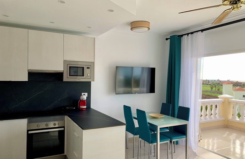 Situated in a prime location in charming Golf Sur, our holiday apartment offers you spectacular views of the ocean and the magnificent surrounding golf courses. With a large private terrace, this is the perfect place for a relaxing and unforgettable holiday. Apartment features: Breathtaking view: Admire the enchanting panorama from the apartment's large private terrace. Enjoy the sunrise over the ocean and relax with a cool drink while overlooking the green golf courses. Bright and comfortable space: The apartment is tastefully furnished and offers a bright and welcoming environment for your stay. The modern and refined interiors will make you feel at home. Fully Equipped Kitchen: Prepare delicious meals in the fully equipped kitchen, equipped with all the necessary appliances and utensils. Enjoy your meals on the terrace overlooking the sea for a unique experience. Access to common facilities: Guests have access to the 3 community swimming pools, one of which is for children