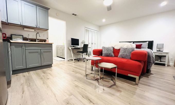 Your cozy getaway awaits in Ventura at this beautiful studio. With 1 bedroom, this perfect retreat is ideal for solo guests or couples seeking a peaceful escape. Wake up to the gentle breeze and soak in the serene atmosphere of this inviting space. Stay connected with WiFi, and enjoy the convenience of amenities like a hair dryer, heating, and a washing machine. Whether you're exploring the nearby attractions or simply unwinding in the comfort of your own private sanctuary, you'll love every moment of your time in Ventura at our studio. The 75” LG 4K Smart TV provided is without cable channels. The Smart TV has apps for guests to stream with their own media service subscriptions, such as YouTube, Netflix, Amazon Prime, Apple TV, Disney+, ESPN, etc. For the EV charging, guests will pay the host $20 the first night (charging only 9pm-9am) ; $15 each additional night of stay for the privilege of using the installed Tesla Wall Connector EV charger. (The charge is for the entire stay, not per nights used. For non-Tesla vehicles, Guests will need to bring their own charging adapter.). - Washer & Dryer are available on site. It is $5/ per load.