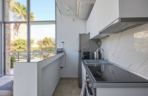 Villa Calypso is a villa with its own 25m² outdoors dining area and a very big pool, where you can relax with the rest of your family and friends. The balcony of the villa gives you the opportunity to enjoy the view of the sea which is really close to our complex- around 150m distance. The interior design of this villa is quite unique, as you can find on the second floor a very cozy yet elegant loft with its own king size double bed and a SMART 4K TV.