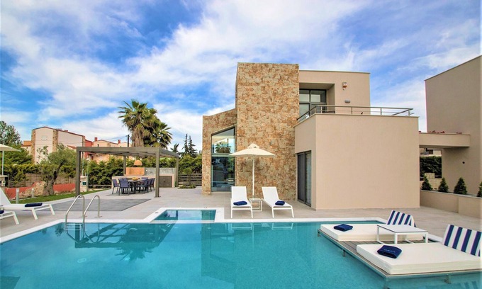 Ocean Private Villas - Villa Calypso - private heated pool/jacuzzi/barbecue has 4 Bedrooms , 3 Bathrooms, and max occupancy of 9 people. The minimum rental for this property is 1 nights, but this can change depending on the season you plan on staying. Previous guests have given good rated it, and VRBO labeled it a top-rated Villa because of the excellent services rendered by the owner or manager of this Villa, and has consistently provided great experiences for their guests. Most families or guests that use it recommend it to their friends and some of them are repeat guests. Villa has a friendly neighborhood, and the Pefkochori has interesting places to visit. If you want to learn more about the Villa in Pefkochori, such as places to visit and things to do nearby, you can check below to learn more.
