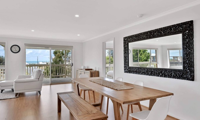 “Ocean View” - Enjoy holidays with extended family and friends close to Goolwa Beach in this beautiful six-bedroom home which includes a games room and 2 living/dining/kitchen areas.