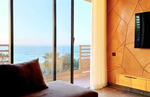 Luxury appartement with stunning beach front view in new residence with a private swimming pool and sun terrace. It has a spacious living room,modern equipped kitchen,cozy bedroom and a balcony overlooking the ocean.