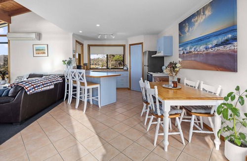 Ocean View Beach House, a place to relax and unwind. offering breathtaking views of Diamond Island and Redbill Beach, you're perched high on the hill, surrounded by nature, yet just a two-minute drive to central Bicheno. Sleeping up to seven guests comfortably, Ocean View is perfect for the entire family (we're even pet friendly).