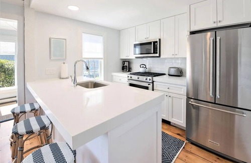 Cook in the beautiful new kitchen with quartz countertops and stainless steel appliances, and drink your coffee at the breakfast bar with french bistro style rattan stools. Enjoy steaks on the brand new patio, grilling with an ocean view. Visit the amazing restaurants in Mashpee Commons, just a few minutes away.