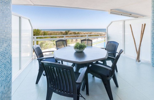 Aiguablava apartment is a luxury beachfront apartment in Gandia Beach with amazing sea views from the large terrace. Its location is an ideal resort for large families looking for a relaxing holiday by the sea. Between the sand and the complex you will find a pedestrian promenade, which joins the promenade, which will allow you to take long walks by the sea. In addition, not having to cross any street makes it ideal for the elderly or families with children.From the terrace you enjoy spectacular panoramic views, which you can enjoy 24 hours a day. The complex has a large garden around pisicna artificial, common area with TV and Wifi (which are often the football games with the neighbors), gym and tennis. The apartment is furnished with a modern and fresh design. Has TV, and WIFI and also air conditioning / heating centralized. It has 2 bedrooms for 4 people. Equipped with everything, towels and sheets.You can play tennis, swimming pool. In the area you can make sea sports, mountain bike, fishing, running, kite surfing, paddle surfing.